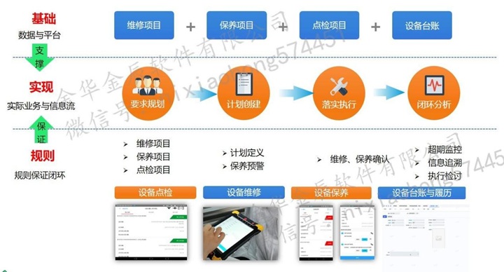 設(shè)備運(yùn)維:完成對(duì)設(shè)備運(yùn)維全生命周期的管理,包括設(shè)備臺(tái)帳、點(diǎn)檢、保養(yǎng)、維修、改造、報(bào)廢以及備品備件管理