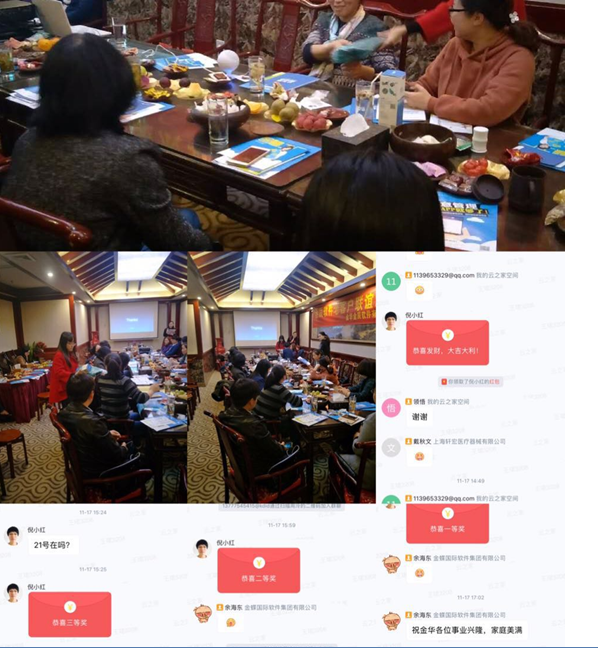 兩點四十,小伙伴們都到的差不多啦,金辰軟件的副總經(jīng)理倪小紅開場給大家做了活動說明,強調(diào)活動的意義,同時感謝客戶的積極參與,接下來由金蝶國際軟件集團有限公司溫州金華的云之家分銷管理經(jīng)理周泠周老師介紹了一下云之家,還有金蝶國際軟件集團有限公司溫州金華片區(qū)的總監(jiān)余海東余老師介紹了云之家基于kis產(chǎn)品的請應用,最后由金辰kis事業(yè)部的徐春蓮介紹了KIS云專業(yè)版15.0的新增功能。在此期間穿插了有獎問答和抽獎的環(huán)節(jié)。