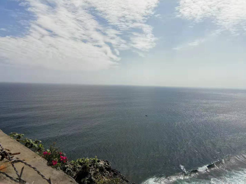 午餐后,去了烏魯瓦圖斷崖(情人崖)。這里海浪拍打著懸崖,海鳥在空中翱翔,景色非常迷人。與海神廟岸邊公園相似,情人崖上也遍布各種帶有宗教色彩和巴厘島特色的石雕,這些雕塑造型圓潤(rùn),線條卻無比繁復(fù),足可見出工匠的巧手妙思。更有熱帶風(fēng)情的是,不少神像的耳邊還插著一朵當(dāng)?shù)刈疃嘁姷哪厅S色雞蛋花,巴厘人的細(xì)膩多情可見一斑。在情人崖有許多猴子,特別猖獗,會(huì)搶東西,除非用吃的或錢引誘,要不沒法取回。