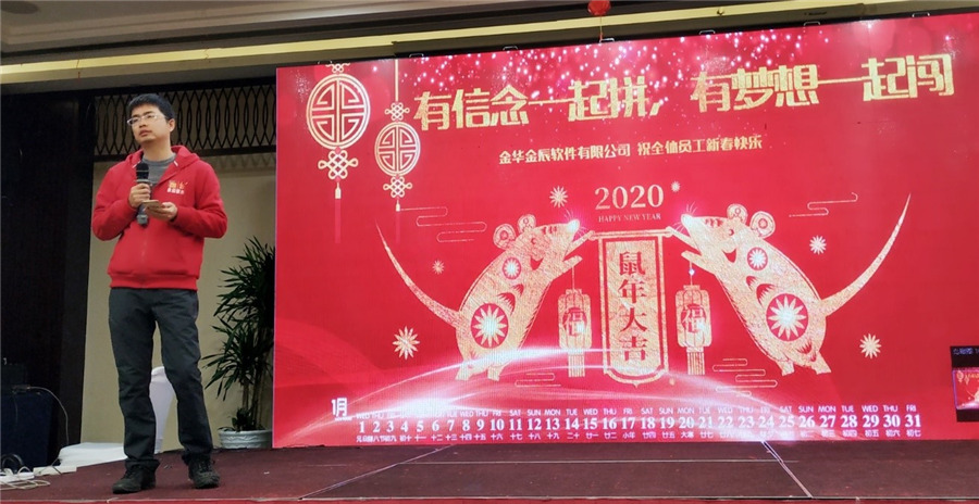 李家駒李總說公司從創(chuàng)業(yè)之初的艱辛痛楚,到今天的良性增長,從最初的無人可用,到現(xiàn)在的人才濟(jì)濟(jì),金華金辰走過了16年,迎來了第17個年頭;我們從默默無聞到聲名鵲起,離不開每一位金辰家人的辛勤付出,在這里非常感謝各位家人,也堅信在2020年你們會更加出色更加優(yōu)秀。