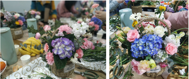 活動(dòng)第二部分為插花沙龍。我們特邀了花藝?yán)蠋煬F(xiàn)場(chǎng)講解花藝知識(shí),手把手傳授插花技巧。