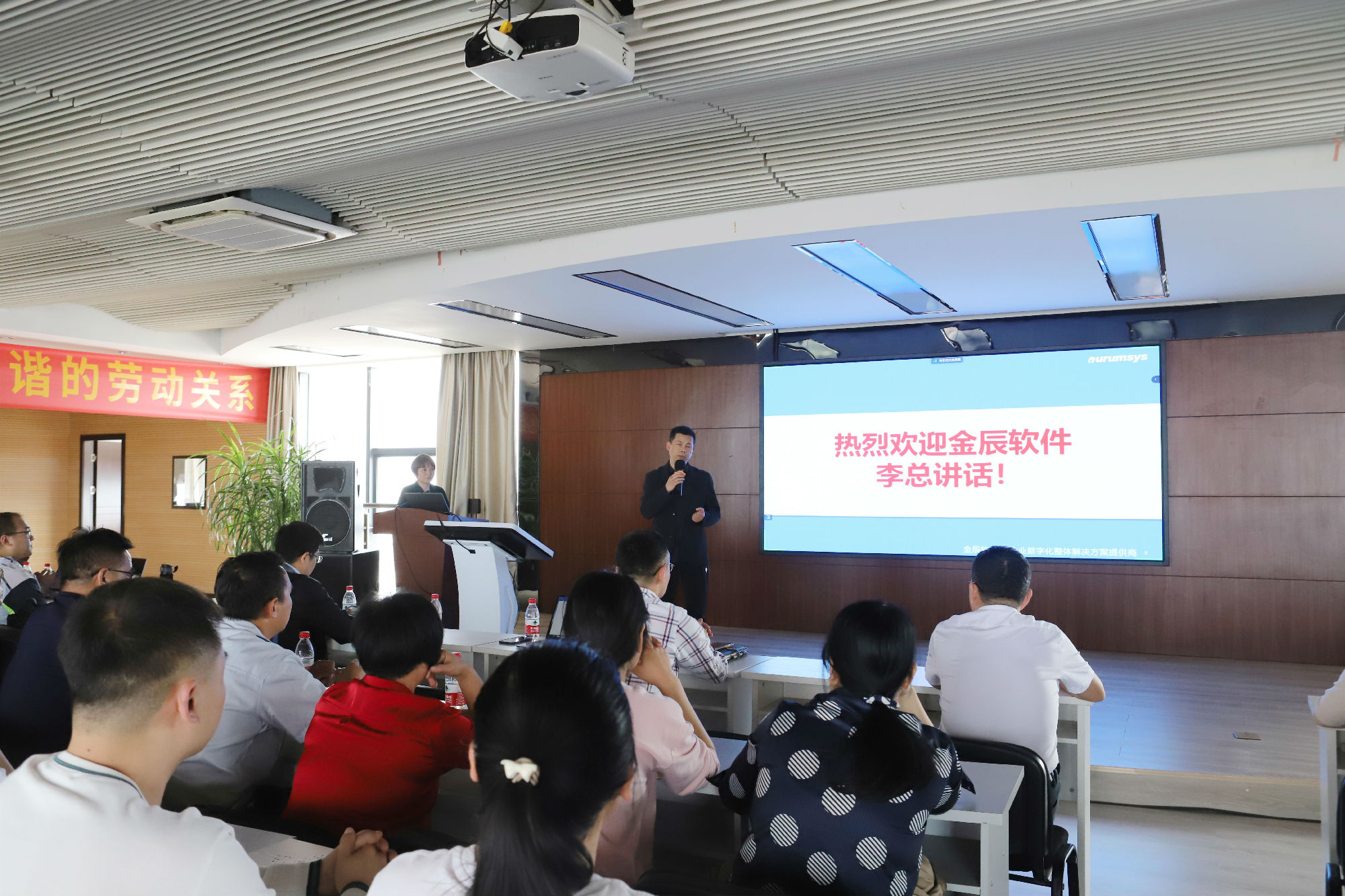 隨后,金華金辰軟件李總致辭中表達(dá)了完成該項(xiàng)目的信心與決心,李總認(rèn)為信息化實(shí)施不僅僅是企業(yè)應(yīng)用系統(tǒng)搭建信息化的過程,更是企業(yè)梳理流程、規(guī)范業(yè)務(wù)、改善管理的重要手段,是將軟件產(chǎn)品與企業(yè)業(yè)務(wù)結(jié)合的過程,可以幫助企業(yè)打造一支富有創(chuàng)新精神,精通企業(yè)管理與信息化的隊(duì)伍。