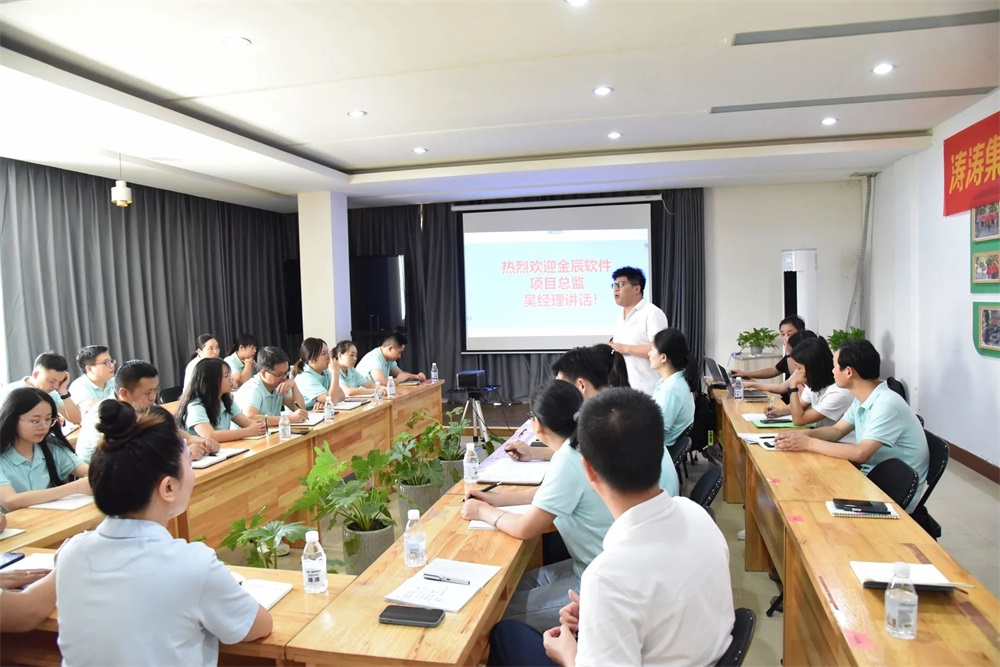 金辰軟件的項(xiàng)目經(jīng)理也發(fā)表了講話,非常榮幸能與濤濤集團(tuán)達(dá)成戰(zhàn)略合作,并將竭誠(chéng)為其服務(wù)。金辰此次不光是系統(tǒng)實(shí)施,也將通過項(xiàng)目實(shí)施幫助濤濤培養(yǎng)相關(guān)的數(shù)字化人才,并在雙方共同努力下,高質(zhì)量完成此次濤濤流程的變革,助力其在行業(yè)中穩(wěn)步前行。